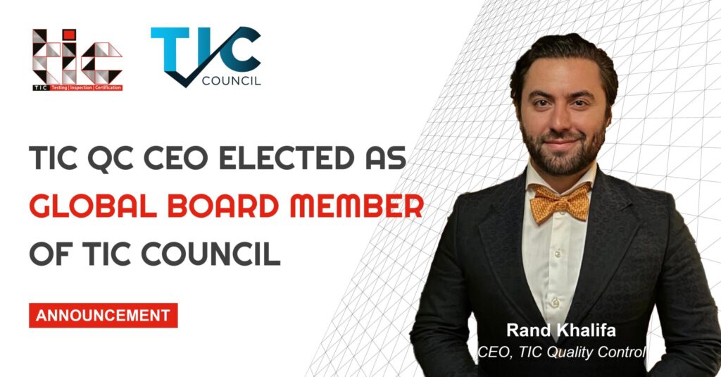 We are honoured to announce that our CEO, Rand Khalifa, has been elected as a global board member of the TIC Council โ a distinguished acknowledgement of outstanding leadership and commitment to excellence within the testing, inspection, and certification industry.