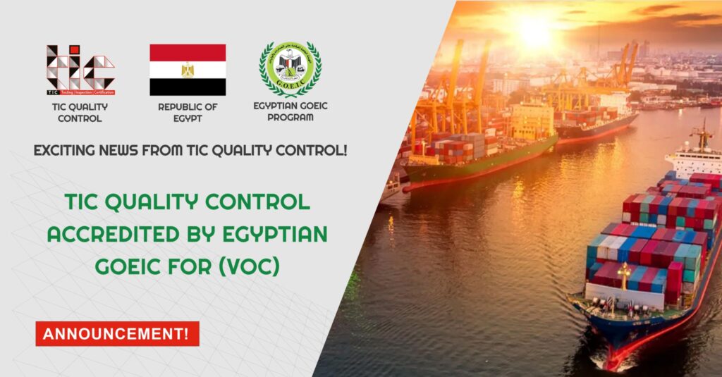 We are proud to announce that TIC Quality Control has been officially accredited by GOEIC (General Organization for Export and Import Control) to operate under the Verification of Conformity (VOC) program for Egypt. This milestone reflects our unwavering commitment to quality, compliance, and excellence in inspection and certification services across global markets. We look forward […]